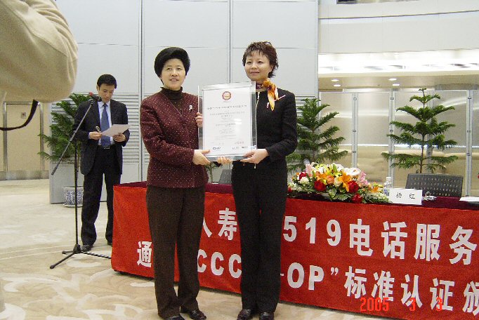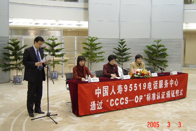下午2點,在中國人壽保險股份有限公司總部舉行了隆重的頒證儀式。中國人壽保險股份有限公司總部及江蘇、四川、深圳分公司的95519呼叫中心順利通過CCCS標(biāo)準認證。其中,中國人壽總部及江蘇省分公司95519呼叫中心獲準CCCS五星級認證評定,四川省及深圳市95519呼叫中心獲準CCCS四星級認證評定。