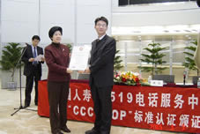 在頒證儀式上,信息產(chǎn)業(yè)部信息中心副主任、中國信息化推進聯(lián)盟秘書長劉獻軍,中國信息化推進聯(lián)盟客戶關(guān)系管理專業(yè)委員會常務(wù)副主任、《全國呼叫中心標(biāo)準體系》制定與評審小組組長郭晨東分別向中國人壽總部及三地分公司頒發(fā)了CCCS認證證書。