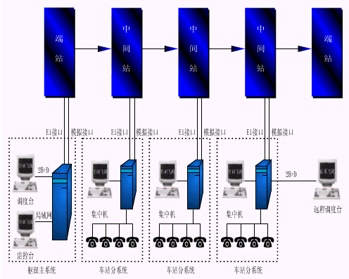 北京佳訊飛鴻通信技術(shù)有限公司在充分調(diào)研的基礎(chǔ)上,推出了飛鴻98鐵路數(shù)字專用通信系統(tǒng),以一套數(shù)字化的設(shè)備替代原有模擬調(diào)度系統(tǒng)、專用電話系統(tǒng)、集中機和區(qū)轉(zhuǎn)機等多種模擬設(shè)備,實現(xiàn)鐵路專用通信的所有基本功能,同時利用數(shù)字化的傳輸通道和數(shù)字化的技術(shù),實現(xiàn)整個調(diào)度區(qū)間內(nèi)所有設(shè)備的集中監(jiān)控、遠程維護、故障診斷、環(huán)境動力監(jiān)測等等維護管理功能,大大方便了維護檢修工作,使其維修方式可由過去的預防修模式轉(zhuǎn)變?yōu)楝F(xiàn)代的狀態(tài)修方式,可在不中斷通信的情況下對系統(tǒng)進行維護,極大的提高了系統(tǒng)的安全可靠性。同時系統(tǒng)兼容原有模擬調(diào)度實回線,沒有數(shù)字通道的車站也可通過模擬實回線接入系統(tǒng)。