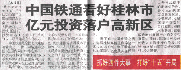 中國(guó)鐵通億元投資落戶(hù)桂林