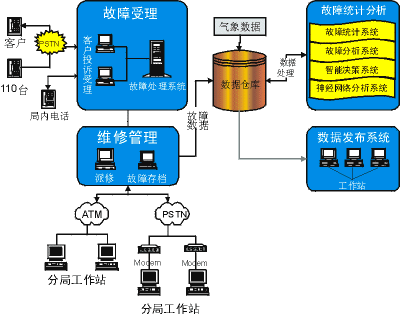 <> 事務處理中心由事務受理工作站、故障處理流程控制工作站、檢修信息發(fā)布工作站、數(shù)據(jù)處理服務器、網絡服務器等部分組成