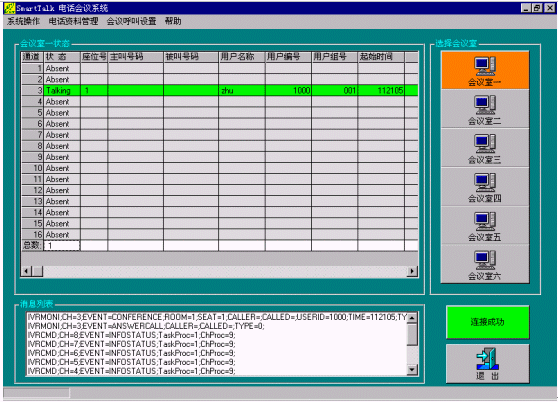 為了突破傳統(tǒng)電話會(huì)議系統(tǒng)的功能局限性,降低采用可視電話會(huì)議系統(tǒng)的高昻成本,本公司采用先進(jìn)的CTI技術(shù)和設(shè)備,推出了SmarTalk Conference電話會(huì)議系統(tǒng),具有超強(qiáng)的會(huì)議能力(同時(shí)可建立多個(gè)會(huì)議,每個(gè)會(huì)議最多同時(shí)可以設(shè)60個(gè)全功能會(huì)議座席,會(huì)議語音效果清晰流暢),并且利用計(jì)算機(jī)控制技術(shù)使操作變得簡捷、方便,得到用戶一致的好評(píng)。同時(shí)用戶可以使用普通電話終端(包括固定電話和移動(dòng)電話)進(jìn)入會(huì)議,使用本系統(tǒng)的企業(yè)用戶不需要專用的中心會(huì)議室,參加會(huì)議的人員可以分布在任一地點(diǎn),極大地方便了會(huì)議的召開。
