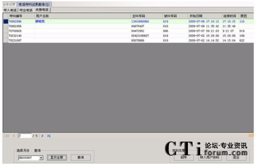 當(dāng)有電話來電時,系統(tǒng)顯示來電號碼及來電人員的客戶資料信息;