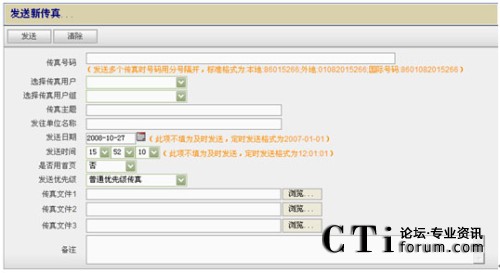 - 電子郵件提交:用戶使用電子郵件應(yīng)用程序(如Notes或 Outlook)直接提交傳真,傳真文件為 tif、word、excel、txt、html、jpg等格式的文件;