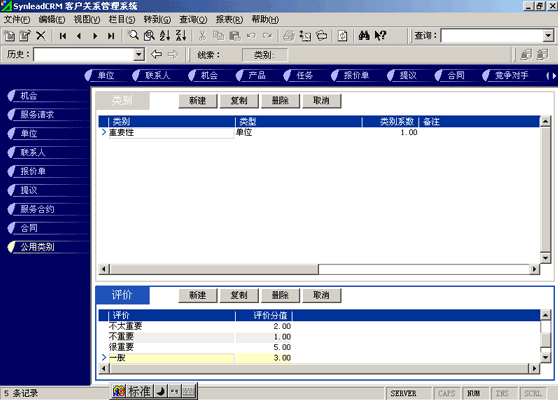 除了對(duì)單位、聯(lián)系人分類(lèi),SynleadCRM還可以對(duì)機(jī)會(huì)、報(bào)價(jià)單、提議、合同、服務(wù)請(qǐng)求、服務(wù)合約等進(jìn)行自定義的多重分類(lèi)。您可以結(jié)合本企業(yè)的具體情況,舉一反三,制定行之有效的分類(lèi)體系。