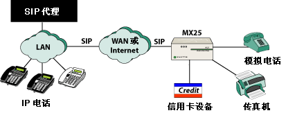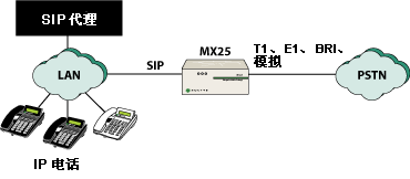 MX25 可以提供模塊化 SIP 網(wǎng)關(guān)的功能,這對于企業(yè)的許多應(yīng)用程序是很有益的。其撥號計劃實(shí)現(xiàn)了多個 SIP 服務(wù)器(內(nèi)部和外部)以及電話電路之間的路由,這使得它幾乎可以在每一個 VoIP 應(yīng)用程序中工作。