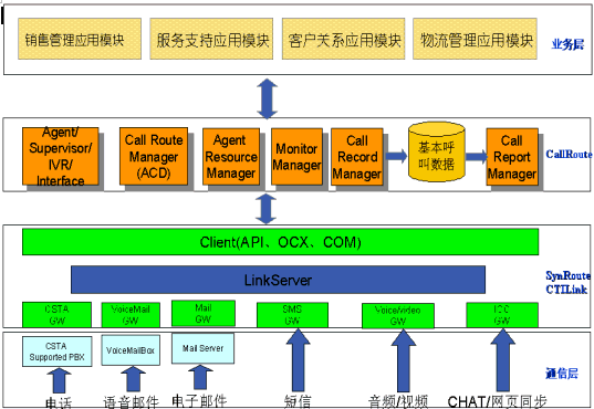 。。CallRoute平臺是一個基于CSTA標準、支持分布互連的呼叫中心平臺。商路通呼叫中心平臺全套產(chǎn)品包括多個服務部件,客戶端的接口部件(OCX、DLL)以及功能豐富應用工具。我們的軟件系統(tǒng)采用先進的軟件工程設計方法,整個系統(tǒng)的軟件結(jié)構(gòu)體系遵循以下設計原則: