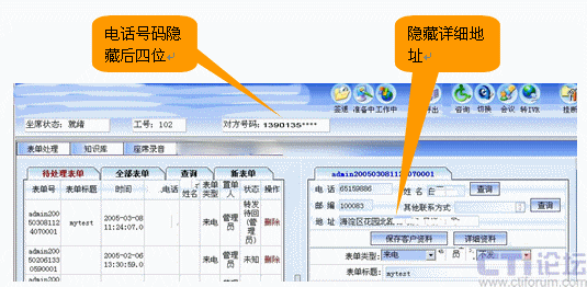 例如電話號(hào)碼、送貨地址是最為重要的商業(yè)信息。將部分信息對(duì)電銷(xiāo)人員、中間環(huán)節(jié)的人員隱藏使其無(wú)法進(jìn)行“飛單”,而在送貨環(huán)節(jié)再OPEN詳細(xì)信息。如下圖所示:
