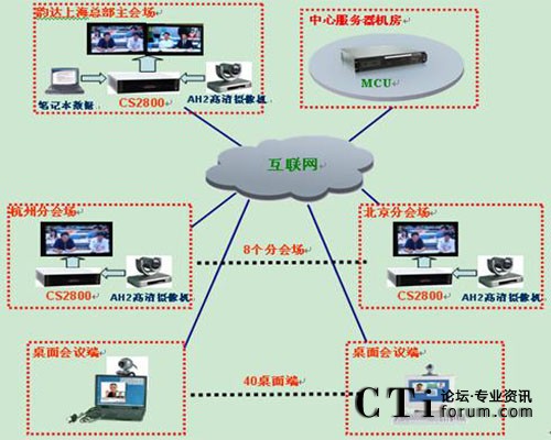 系統(tǒng)為每個(gè)點(diǎn)配置華平CS2800全高清視頻終端,它可以實(shí)現(xiàn)2路1080P全高清視頻輸入和4路1080P全高清視頻輸出,并且全面支持H.264 High Profile(level5)編碼技術(shù),在視頻精度提高一倍的情況下,所需帶寬減半,實(shí)現(xiàn)全動態(tài)1080P視頻傳輸僅需1M的帶寬,配合華平高清MCU,可在韻達(dá)快運(yùn)現(xiàn)有的網(wǎng)絡(luò)條件下實(shí)現(xiàn)全公司的全高清視頻會議,實(shí)現(xiàn)高清、高效溝通。
