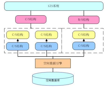 GIS應(yīng)用劃分成基于C/S結(jié)構(gòu)的應(yīng)用和基于B/S結(jié)構(gòu)的應(yīng)用兩種。前一種結(jié)構(gòu)適用于實(shí)現(xiàn)數(shù)據(jù)的采集、入庫、編輯和復(fù)雜的空間分析、專題制圖等應(yīng)用,主要是面向數(shù)據(jù)維護(hù)人員和專業(yè)分析人員使用的,以及為領(lǐng)導(dǎo)和專家提供輔助決策和分析之用;而后一種結(jié)構(gòu)比較適合于實(shí)現(xiàn)簡(jiǎn)單的地圖發(fā)布、空間查詢等應(yīng)用,主要面向的是廣大的Internet用戶。由于這兩種結(jié)構(gòu)各有優(yōu)缺點(diǎn),而從指揮中心的總體角度來看,兩種結(jié)構(gòu)的應(yīng)用都是不可缺少的。系統(tǒng)的總體結(jié)構(gòu)將是一個(gè)同時(shí)包含了C/S和B/S兩種結(jié)構(gòu)的混合型、綜合型結(jié)構(gòu)。系統(tǒng)結(jié)構(gòu)如下: