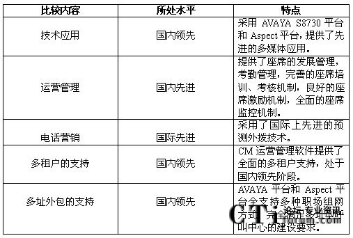 綜合比較,深圳電信商業(yè)呼叫中心的建設(shè)處于國內(nèi)領(lǐng)先階段,有些技術(shù)甚至處于國際先進(jìn)的水平。比較如下: