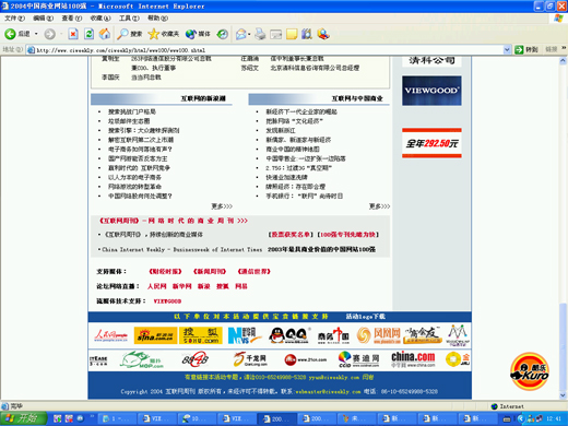 以互聯(lián)網(wǎng)的發(fā)展為推動(dòng),網(wǎng)絡(luò)時(shí)代的商業(yè)變革逐漸深入,產(chǎn)業(yè)融合趨勢(shì)逐漸清晰,并由此而引發(fā)了新一輪的互聯(lián)網(wǎng)投資與應(yīng)用熱潮。10月22日,互聯(lián)網(wǎng)周刊主辦的"2004中國(guó)商業(yè)互聯(lián)網(wǎng)發(fā)展論壇“暨’2004中國(guó)商業(yè)網(wǎng)站100強(qiáng)”頒獎(jiǎng)盛典將在天倫王朝舉行。