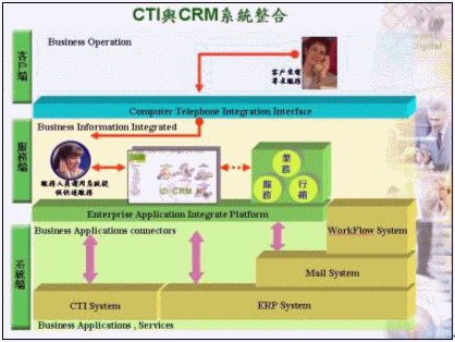 但傳統(tǒng)的CTI系統(tǒng)其重點乃是著重在服務工作的自動化方面,只提供簡單的客戶來電訊息提示,對于客戶進一步的背景資料、嗜好、購買需求及歷史往來記錄并不清楚也無法實時得知,更別說想藉由CTI系統(tǒng)來提供客戶個人化的服務、有效節(jié)省通話時間、刺激其潛在的購買需求,為了達成上述的目標,唯有將CTI系統(tǒng)與CRM系統(tǒng)進行整合,如此,客戶服務的質(zhì)量才可能達成某個程度的提升,而良好的客戶關系管理也將是未來呼叫中心運作成功與否的關鍵所在。