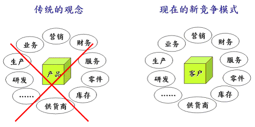 在CRM系統(tǒng)架構(gòu)中,如何持續(xù)和客戶保持好關(guān)系、進(jìn)而提高客滿意度是最主要目標(biāo)之一,也是客戶關(guān)系管理架構(gòu)的核心價(jià)值所在,F(xiàn)在企業(yè)的競(jìng)爭(zhēng)模式已經(jīng)從以往以產(chǎn)品為中心的思考模式,轉(zhuǎn)變到以客戶為中心的思考模式。(如圖一)