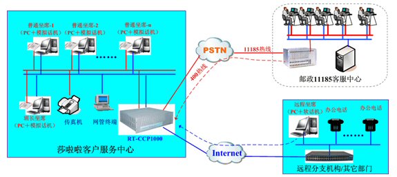 IP分布式特點:對于莎啦啦這樣一個企業(yè)級客戶而言,呼叫中心只是企業(yè)的一個部門,這個部門需要與企業(yè)的其他部門協(xié)同工作,才能最大限度的發(fā)揮呼叫中心的作用。這就要求莎啦啦所部署的呼叫中心系統(tǒng)具備極為便捷的擴展能力,在需要其他部門響應客戶服務時,能夠?qū)⑵渌块T的相關人員立即升級為更專業(yè)的二線坐席來協(xié)同處理。而傳統(tǒng)的呼叫中心系統(tǒng)中,在需要協(xié)同服務時,臨時部署二線坐席或者辦公電話,顯然是不可能的,而為其他部門設立專家坐席,對于資金有限的企業(yè)而言,其成本和收益往往又不成比例。那么基于IP的技術則可以非常輕松的解決這一矛盾。RT-CCP1000自帶的免費軟電話,能夠通過標準的SIP或者H.323協(xié)議和局域網(wǎng)使莎啦啦的任何專業(yè)人員可以立即加入到整個呼叫中心系統(tǒng)坐席組中。