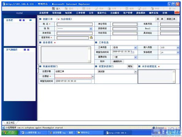 融天科技多媒體呼叫中心可同時支持電話、留言、郵件、傳真、短信、視頻、Web-Call等全方位的服務模式,包括自動呼叫分配、呼叫排隊、座席分組、客戶資料自動彈屏、運營監(jiān)控、統(tǒng)計分析等全套的呼叫中心功能,座席應用界面也是采用非常友好全中文Web方式(下圖為標準界面,融天科技的研發(fā)團隊可為您非常靈活的定制企業(yè)個性化的功能及界面):