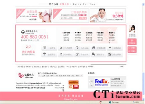 “鉆石小鳥”是國內(nèi)最早從事網(wǎng)絡鉆石銷售的專業(yè)珠寶品牌,一直致力于引領全新鉆石消費潮流,已經(jīng)成為中國網(wǎng)絡鉆石銷售領先品牌。從2002年的第一家鉆石網(wǎng)店到2004年在國內(nèi)首開基于OFFICE的鉆石體驗中心,直至今日的短短7年時間,“鉆石小鳥”迅速把“鼠標+水泥”的全新鉆石銷售模式從上海相繼帶到了北京、杭州、廣州、寧波、南京、成都、武漢、西安、青島,并立志在未來的2年內(nèi)覆蓋全國主要一線城市。