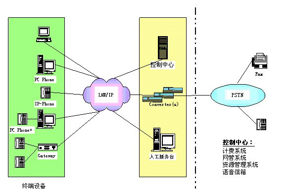 控制中心:包括資源管理系統(tǒng)、計(jì)費(fèi)系統(tǒng)、網(wǎng)管系統(tǒng)、語音信箱。 其中,資源管理系統(tǒng)主要執(zhí)行地址翻譯、權(quán)限控制、路由管理等功能;計(jì)費(fèi)系統(tǒng)主要完成計(jì)費(fèi)及結(jié)算功能;網(wǎng)管系統(tǒng)完成對網(wǎng)絡(luò)及IP
