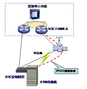 網絡部署方面,核心網側采用H3C萬兆防火墻SecPath F5000-A,為企業(yè)用戶提供IPSEC VPN接入。SecPath F5000-A支持虛擬化技術,提供不同企業(yè)用戶的接入并保證安全隔離;雙機模式部署,保證網絡可靠性;大容量ACL規(guī)格,可支持大規(guī)模企業(yè)用戶接入。接入側采用H3C“商務領航”定制網關,實現(xiàn)寬帶接入Internet,保證用戶的門戶網站或內網資源的訪問速度。此外,定制網關基于3G無線通信接口的VPN功能,可以實現(xiàn)移動VPN,特別適合于布線困難、無有線接入資源、ADSL接入速度低或不穩(wěn)定、以及需要線路備份的企業(yè)用戶。