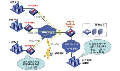 企業(yè)專網作為企業(yè)內部信息分享的重要通道,已經成為提升工作效率的關鍵。但由于企業(yè)專網前期投資巨大、建設速度遠落后于企業(yè)發(fā)展速度,因此以租賃形式為主的VPN業(yè)務漸漸興起。上海電信作為國內領先的運營商,與業(yè)界領先的IToIP解決方案提供商H3C的合作,推出的“E通VPN”品牌業(yè)務,提供“網絡+安全+服務+Qos”綜合信息服務,受到了企業(yè)用戶的廣泛歡迎。