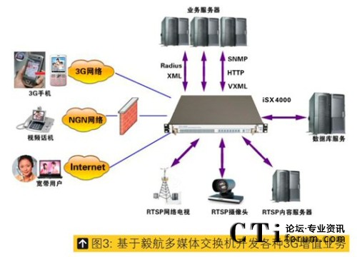 隨著中國3G用戶的日益增多,基于3G網(wǎng)絡的增值業(yè)務也日益受到各大運營商重視,而且運營商也寄希望于形形色色的增值業(yè)務能夠帶動3G用戶的增長,針對這種狀況以及國內(nèi)三種運營商制式(TD-SCDMA、WCDMA、CDMA2000),毅航發(fā)布專門針對3G增值業(yè)務或2G-3G混合增值業(yè)務的真正一體化開發(fā)平臺,基于此平臺開發(fā)者無需關心3G網(wǎng)絡接口、3G網(wǎng)絡制式、3G網(wǎng)絡信令及3G視頻編解碼而直接開發(fā)3G業(yè)務流程即可,是目前國內(nèi)外最簡單、單機承載容量最大的3G增值業(yè)務開發(fā)平臺,是在毅航通信 iSX4000 通用業(yè)務平臺的基礎上增加視頻模塊即可將原來在2G上的所有應用平滑升級到3G,升級周期只需要1-2周即可,因此基于毅航增值業(yè)務平臺的3G示范應用也很快會在中國三個不同制式的3G網(wǎng)絡上開通。