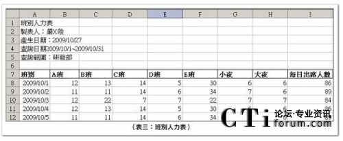 與分時人力表極為相似,但此報表顯示的是當(dāng)天每個班別的表定出席人數(shù),通常是在計算津貼或是特殊事件(Ex:大夜班座席員數(shù)量)時使用,唯因現(xiàn)場管理或班務(wù)調(diào)度之需,可能會拖動班表造成座席員表定班別之實際上下班時間與原始班別設(shè)計之起訖時間不同,管理人員需特別注意。