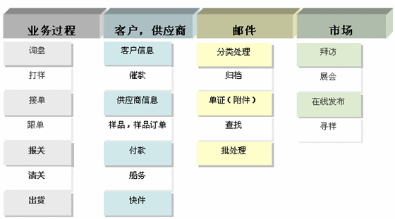 在貿(mào)易中,打樣的樣品和貿(mào)易流程中的單證都是我們的數(shù)據(jù)。走完貿(mào)易過(guò)程,這些信息都散落在郵件中和過(guò)去不在重現(xiàn)的日常工作過(guò)程中。