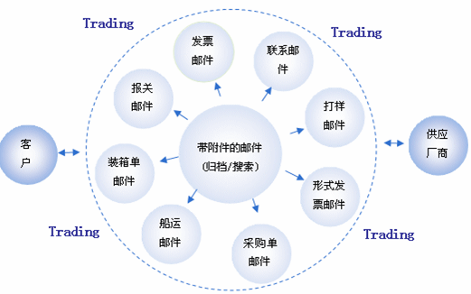 郵件是貿(mào)易中不可缺少的技術工具,郵件系統(tǒng)提供郵件的收發(fā)和管理,但是它并沒有提供和線索、活動、客戶、供應商、訂單集成的功能。Trading