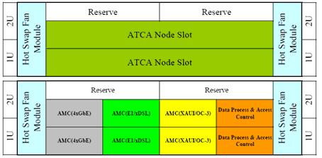 圖3,用2U ATCA構(gòu)建的寬帶綜合接入設(shè)備
