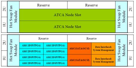 從上面的例子已經(jīng)可以看出,2U ATCA雖然很小,但是利用其靈活的網(wǎng)絡(luò)拓?fù)浣Y(jié)構(gòu),配合不同的AMC模塊,可以實(shí)現(xiàn)復(fù)雜的、過去要用龐大的系統(tǒng)平臺(tái)才能實(shí)現(xiàn)的功能。