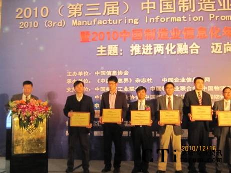CTI論壇(ctiforum)12月27日消息(記者 潘婷婷):12月16日,由中國信息協(xié)會(huì)聯(lián)合我國十幾家制造業(yè)行業(yè)協(xié)會(huì)共同舉辦的“2010(第三屆)中國制造業(yè)信息化推進(jìn)大會(huì)暨中國制造業(yè)信息化年度頒獎(jiǎng)盛典”在北京成功舉行。中國信息協(xié)會(huì)會(huì)長盧時(shí)徹、中國機(jī)械工業(yè)聯(lián)合會(huì)特別顧問、國家信息化專家咨詢委員會(huì)委員朱森第、工業(yè)和信息化部信息化推進(jìn)司安筱鵬等領(lǐng)導(dǎo)出席此次活動(dòng)并發(fā)表演講。會(huì)上,八百客獲得“2010年度CRM領(lǐng)軍企業(yè)”大獎(jiǎng),至此,八百客已經(jīng)斬獲“中國云計(jì)算領(lǐng)軍企業(yè)”和“CRM領(lǐng)軍企業(yè)”雙料大獎(jiǎng),為2010年畫上了圓滿的句號(hào)。