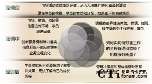 教育培訓機構(gòu)屬于典型的現(xiàn)代商業(yè)服務業(yè),其業(yè)務流程復雜,數(shù)據(jù)實時性要求高,課程多變,潛在學員群體廣泛。機構(gòu)管理者面臨的困擾和挑戰(zhàn)很多: