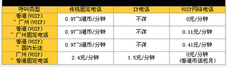 若香港與廣州兩地的終端計算機都同時安裝有VOIP的適配器,只需要通過Internet則可以實現(xiàn)免費通話,而通過傳統(tǒng)的固定電話通話則每分鐘需要耗費0.97~3的港幣;而香港通過VOIP播打廣州本地的固定電話,則需要廣州本地的VOIP計算機再飛線到所需播打的號碼上,簡單地說就是通過廣州本地的VOIP適配器利用廣州本地的固話線路播打香港所需接通的廣州號碼,從而實現(xiàn)長途電話本地化,費用僅僅是廣州本地固話所需的話費每分鐘0.11元,而通過傳統(tǒng)的固定電話通話則每分鐘需要耗費0.97~3的港幣;而香港通過VOIP播打國內(nèi)的長途電話,其原理跟播打廣州本地普通電話完全一致,簡單地說就是通過廣州本地的VOIP適配器利用廣州本地的固話線路播打香港所需接通的國內(nèi)長途號碼,費用僅僅是廣州本地固話播打國內(nèi)長途所需的話費每分鐘0.41元,而通過傳統(tǒng)的固定電話通話則每分鐘需要耗費0.97~3的港幣;而相反過來廣州本地通過VOIP播打香港電話原理也一樣,就是通過香港本地的VOIP適配器利用香港本地的固話線路播打廣州所需接通的香港電話,費用方面,傳統(tǒng)的兩地固定電話都需要收取每分鐘2.4元的費用,而通過IP電話卡也需要1.5元/分鐘的費用,而通過VOIP網(wǎng)絡電話的方式則可以實現(xiàn)免費通話,主要是由于香港本地的市話是包月的形式任打。