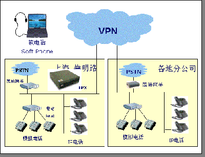 有了這個 IP 電話網(wǎng)絡(luò),出差員工可以方便地使用軟電話通過網(wǎng)絡(luò)與公司免費通訊,直接可以通過公司的 IP 電話網(wǎng),撥打當(dāng)?shù)仉娫,實行長話變市話,降低了出差通訊成本。