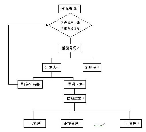 通過(guò)自動(dòng)臺(tái),輸入自己的投訴序號(hào)查詢投訴處理結(jié)果,自動(dòng)投訴處理結(jié)果查詢流程如下: