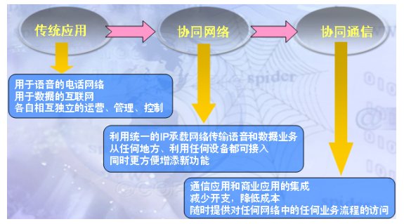網(wǎng)絡(luò)技術(shù)的日趨完善和商業(yè)社會(huì)對(duì)網(wǎng)絡(luò)的依賴(lài),網(wǎng)絡(luò)已經(jīng)成為整個(gè)商業(yè)社會(huì)前進(jìn)的核心動(dòng)力,每一個(gè)微小的進(jìn)步都或多或少地與基于IP的技術(shù)運(yùn)用有關(guān)。網(wǎng)絡(luò)將相互獨(dú)立的計(jì)算機(jī)組合起來(lái)協(xié)同工作,已經(jīng)創(chuàng)造出原來(lái)不可以想象的價(jià)值。今天,以整合各種通信手段和工具為特點(diǎn)的“協(xié)同通信”,已經(jīng)成為一個(gè)廣為人知的理念,人們也期待通過(guò)“協(xié)同通信”超越傳統(tǒng)的通信邊界,實(shí)現(xiàn)簡(jiǎn)便、快捷、準(zhǔn)確而無(wú)處不在的通信。