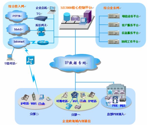 多功能的內(nèi)部通信業(yè)務(wù)(視頻、WiFi無(wú)線(xiàn)、軟電話(huà)漫游、即時(shí)通信、語(yǔ)音信箱、多方通話(huà)等)