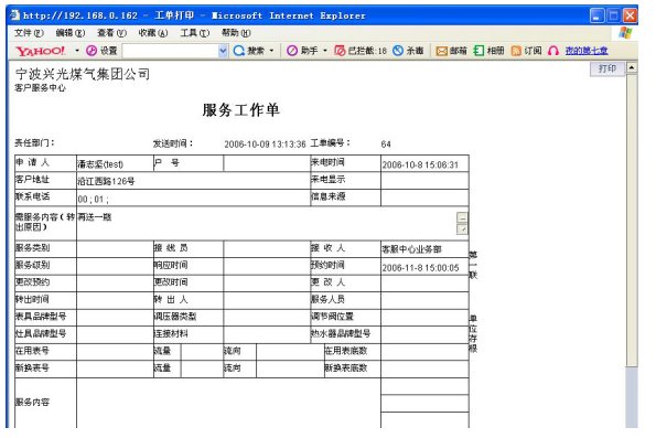 1)業(yè)務(wù)咨詢:用戶通過人工、自動語音等方式咨詢有關(guān)政策法規(guī)、資費標(biāo)準(zhǔn)、用氣常識、報裝方法等,系統(tǒng)以語音、傳真、Email、短消息等方式回復(fù)客戶。