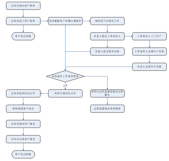 投訴受理:通過人工、自動(dòng)語音、短信、傳真、Email、web等方式受理各種用戶投訴,并可以工單的方式流轉(zhuǎn)到相關(guān)的部門進(jìn)行處理,并記錄處理過程和跟蹤處理結(jié)果。能夠處理從上級部門、消協(xié)等方面轉(zhuǎn)過來的用戶投訴。