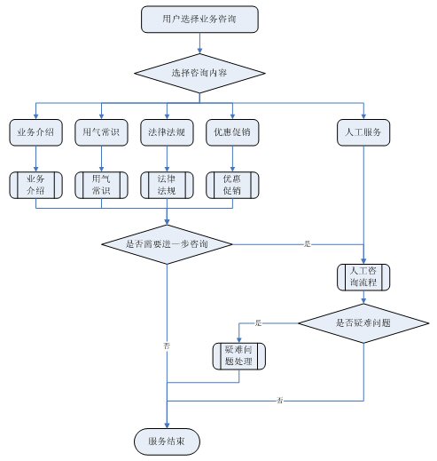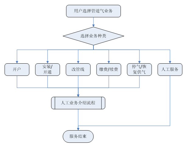 業(yè)務(wù)咨詢:用戶通過人工、自動(dòng)語音等方式咨詢有關(guān)政策法規(guī)、資費(fèi)標(biāo)準(zhǔn)、用氣常識、報(bào)裝方法等,系統(tǒng)以語音、傳真、Email、短消息等方式回復(fù)客戶。