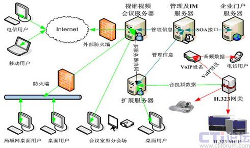 視維系統(tǒng)可以支持分布式視頻服務(wù)器集群,可利用企業(yè)內(nèi)部網(wǎng)絡(luò)或者互聯(lián)網(wǎng)構(gòu)建超大規(guī)模企業(yè)綜合通訊平臺(tái),參考如下典型拓?fù)浣Y(jié)構(gòu):