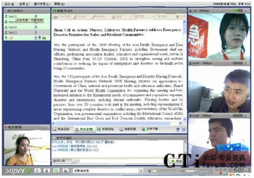CTI論壇(ctiforum)10月16日消息:近日,世衛(wèi)組織用視維Super-V視頻會(huì)議軟件召開亞太地區(qū)會(huì)議,討論第三屆APEDNN的各項(xiàng)議題。參加會(huì)議的成員主要有中國、菲律賓、新加坡、馬來西亞、緬甸、日本、泰國等幾十個(gè)國家和地區(qū)的代表。