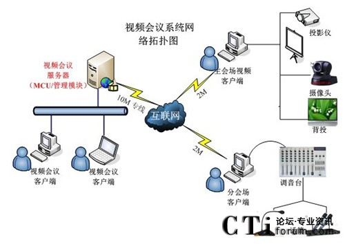 根據(jù)河南送變電建設(shè)公司的網(wǎng)絡(luò)現(xiàn)狀和現(xiàn)有的IT硬件資源以及各級各部門間的溝通協(xié)作需要,視維設(shè)計了一套可行的視頻會議系統(tǒng)解決方案,其網(wǎng)絡(luò)拓?fù)鋱D如下: