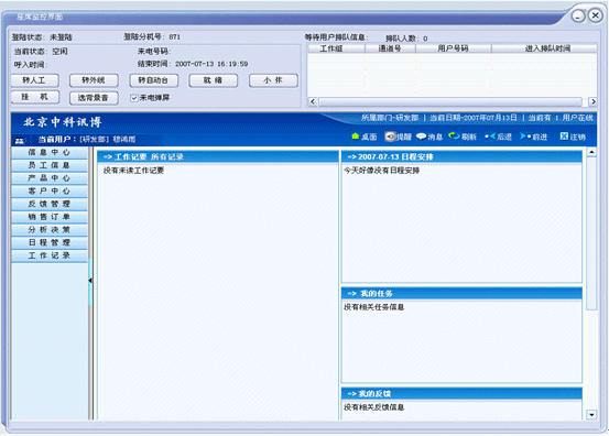 多種排隊(duì)機(jī)制,所有來(lái)電排隊(duì)信息都有顯示,提供對(duì)來(lái)電上移、下移、移到最前或轉(zhuǎn)自動(dòng)臺(tái)處理等多種可選擇的排隊(duì)功能,來(lái)電可根據(jù)服務(wù)要求,選擇不同的服務(wù)部門及人員,系統(tǒng)都做了優(yōu)化處理