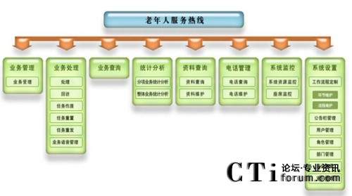 老年人服務熱線系統(tǒng)是為老年人提供援助服務的電話呼叫平臺,利用統(tǒng)一的特服號碼接入,實現(xiàn)統(tǒng)一服務流程和服務標準,服務內(nèi)容包括咨詢服務、求助報警服務、預定服務(預定生活服務、新聞送達、導引服務)、老年人定位導向服務、語音讀報服務等等。老年人服務熱線系統(tǒng)將通過呼叫中心、手機短信息等多種接入手段相結(jié)合的方式向廣大老年人提供7×24小時服務。即:工作時間實現(xiàn)人工座席及自動語音受理;非工作時間實現(xiàn)自動語音受理及值班座席受理。