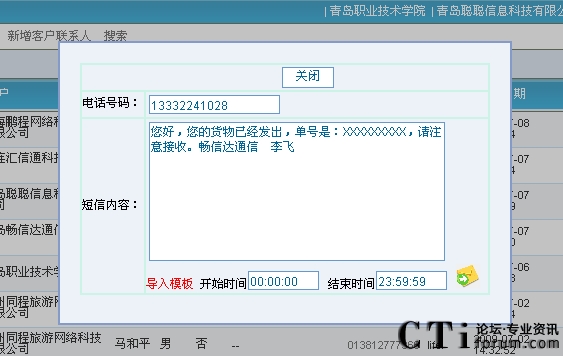 10.短信服務:可以將客戶需要了解的內容以短信方式發(fā)送到他的手機上,通過座席頁面即可實現(xiàn)短信發(fā)送、短信接收、短信群發(fā)、信息匯總等功能。