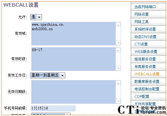 MVB2000系統(tǒng)中可以對WEBCALL的各種參數(shù)進行設置,如下圖所示: