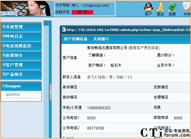 1.座席基本功能:提供座席登入,退出,示忙,示閑,電話轉移,外呼,三方通話,代接等功能。