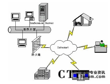 視頻會(huì)議服務(wù)器設(shè)置在上?偛浚ㄟ^(guò)電信的6M帶寬接入互聯(lián)網(wǎng),并配備有廣域網(wǎng)靜態(tài)IP地址。下屬生產(chǎn)基地和分支機(jī)構(gòu)通過(guò)電信ADSL接入和光纖接入等方式接入互聯(lián)網(wǎng)。這些點(diǎn)能夠?qū)崿F(xiàn)網(wǎng)絡(luò)視頻會(huì)議通訊,進(jìn)行音頻、視頻和數(shù)據(jù)的多方溝通。
