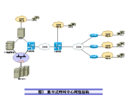某保險公司電話中心采取全國集中服務(wù)方式,其結(jié)構(gòu)如圖2所示,在電話呼叫中心集中管理所有人工語音坐席和電話中心運行所需的所有業(yè)務(wù)數(shù)據(jù)、語音文件和硬件設(shè)備,服務(wù)全國。我們設(shè)計的方案具有如下特點: